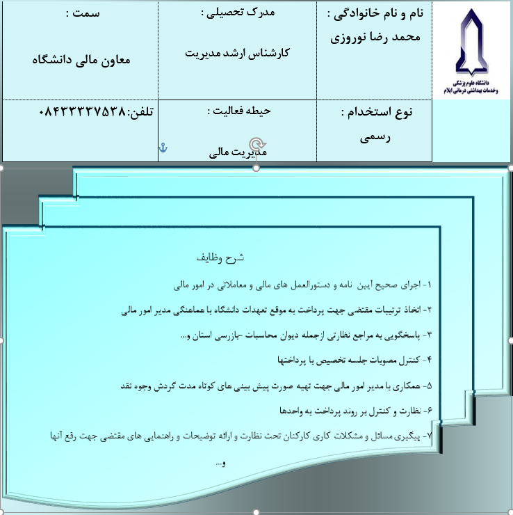 مدیر برنامه ریزی بودجه و پایش عملکرد