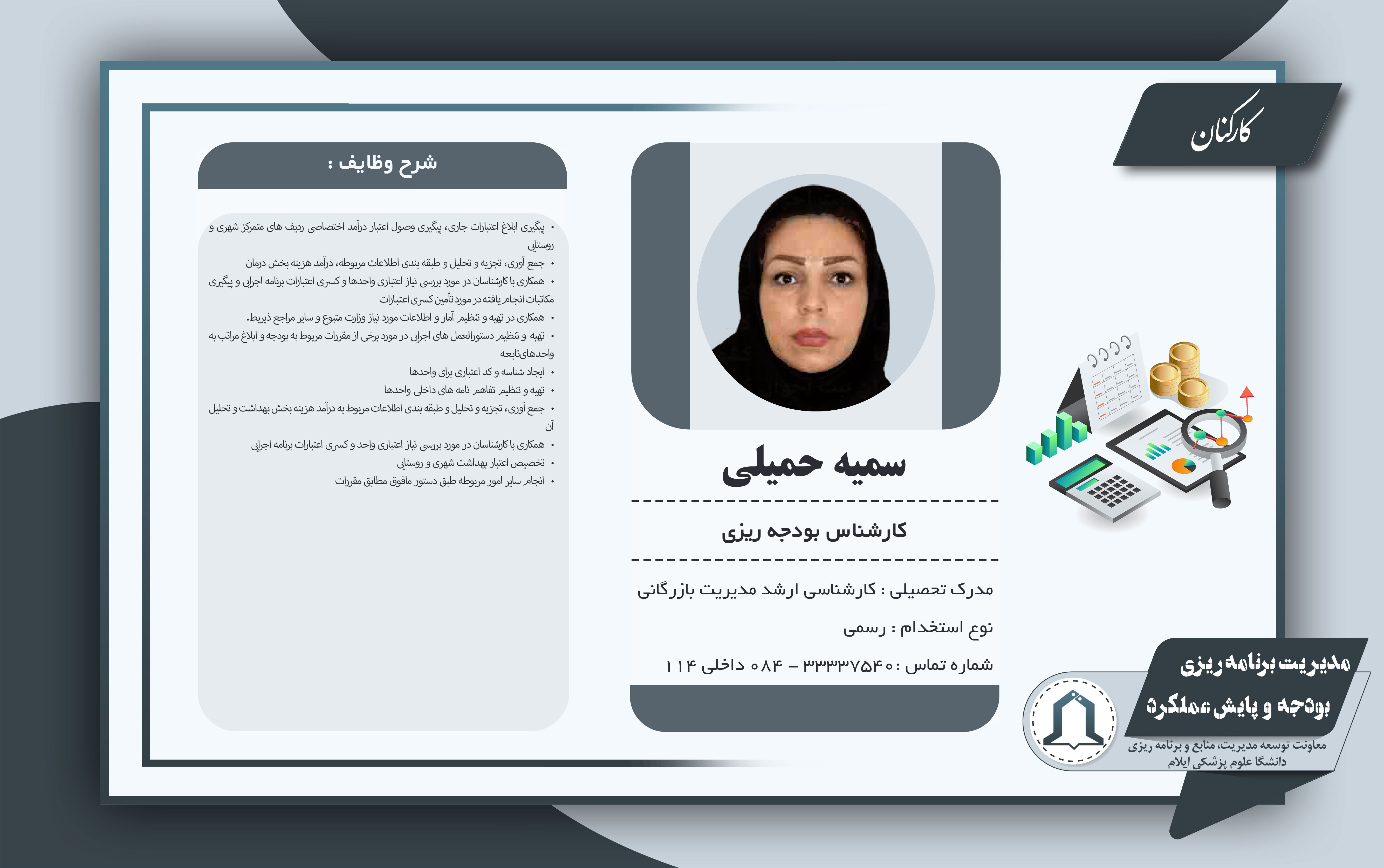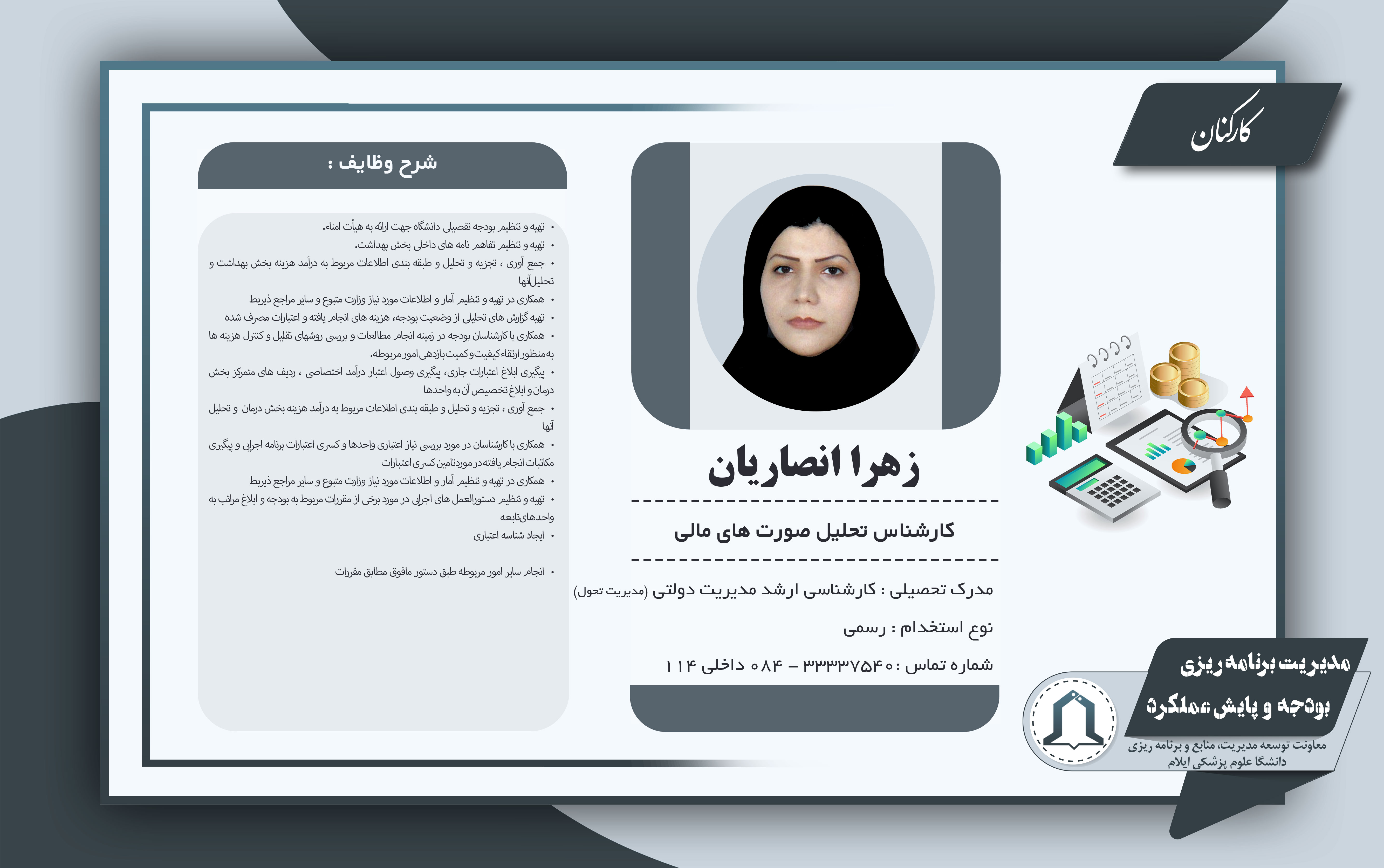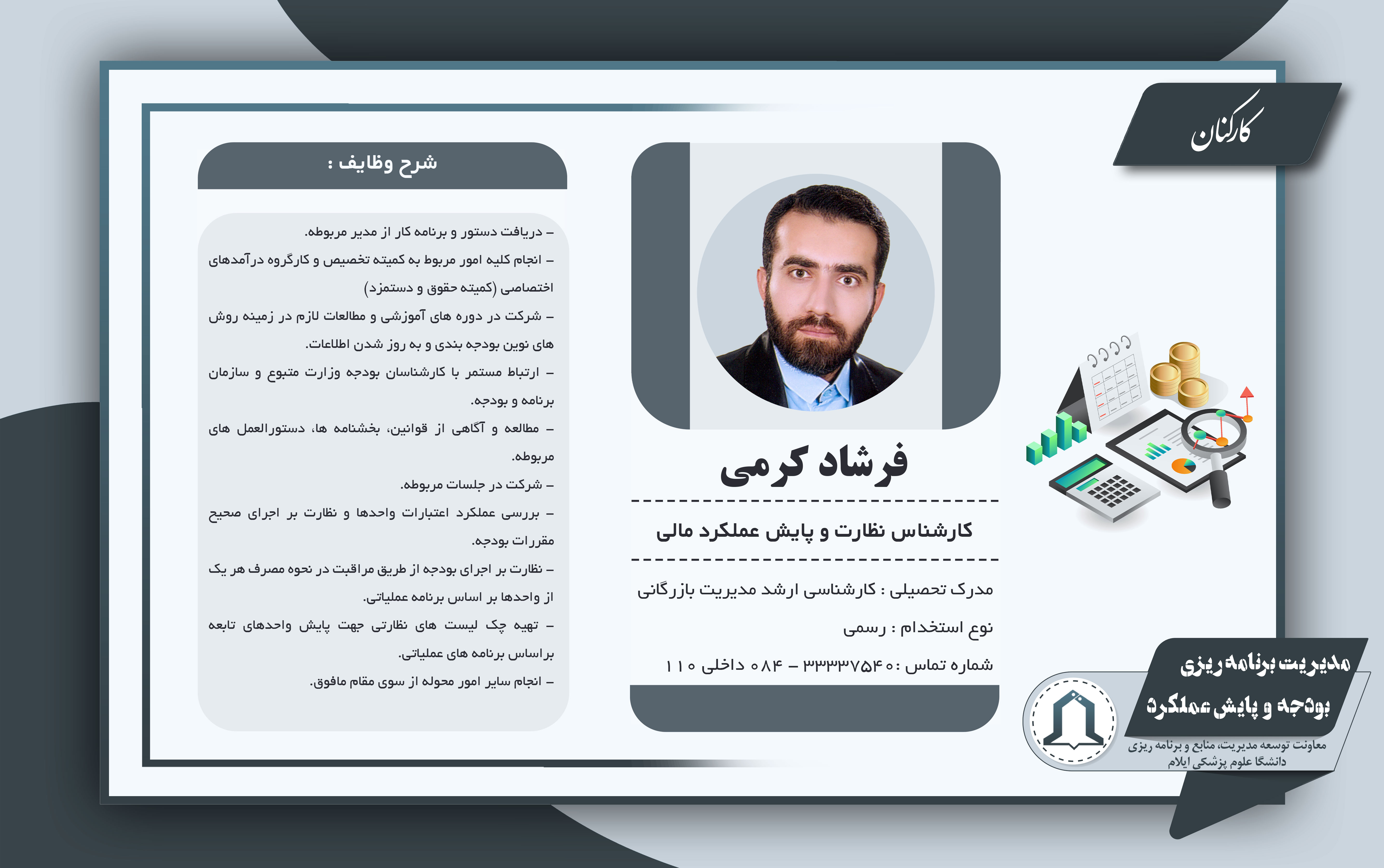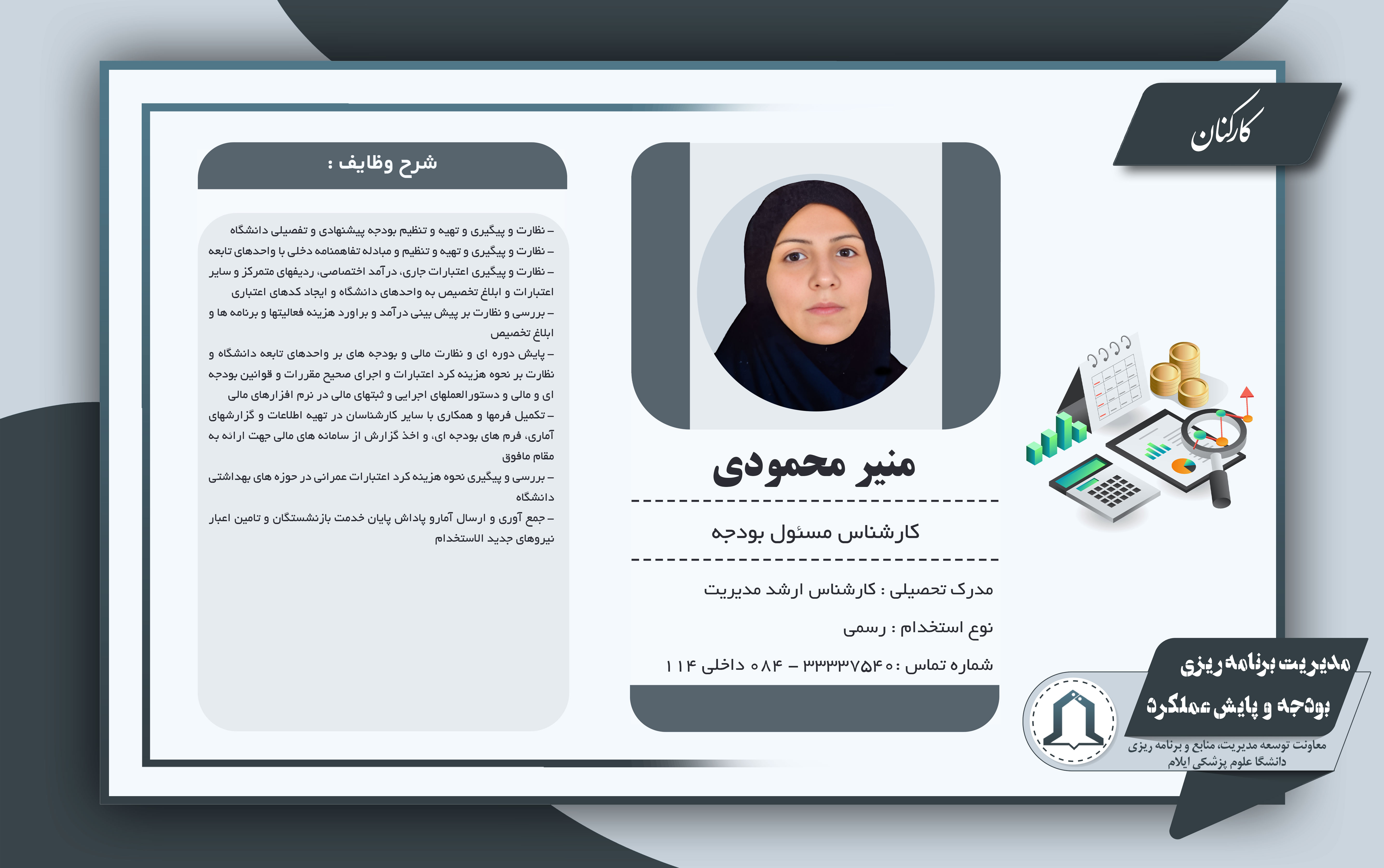 کارشناسان مدیریت برنامه ریزی بودجه و پایش عملکرد